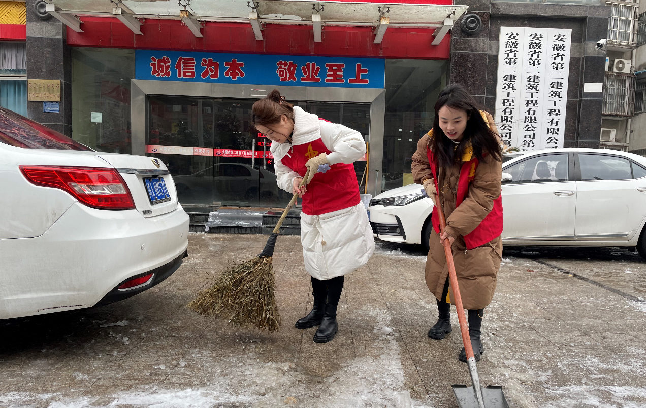 活動中,大家分工合作,利用鐵鍬、掃帚、推板等工具,對工作地點(diǎn)掃雪除冰、清理路障,用實(shí)際行動“融化”冰雪,在冰雪中開辟一條條充滿溫情的暢通之路。