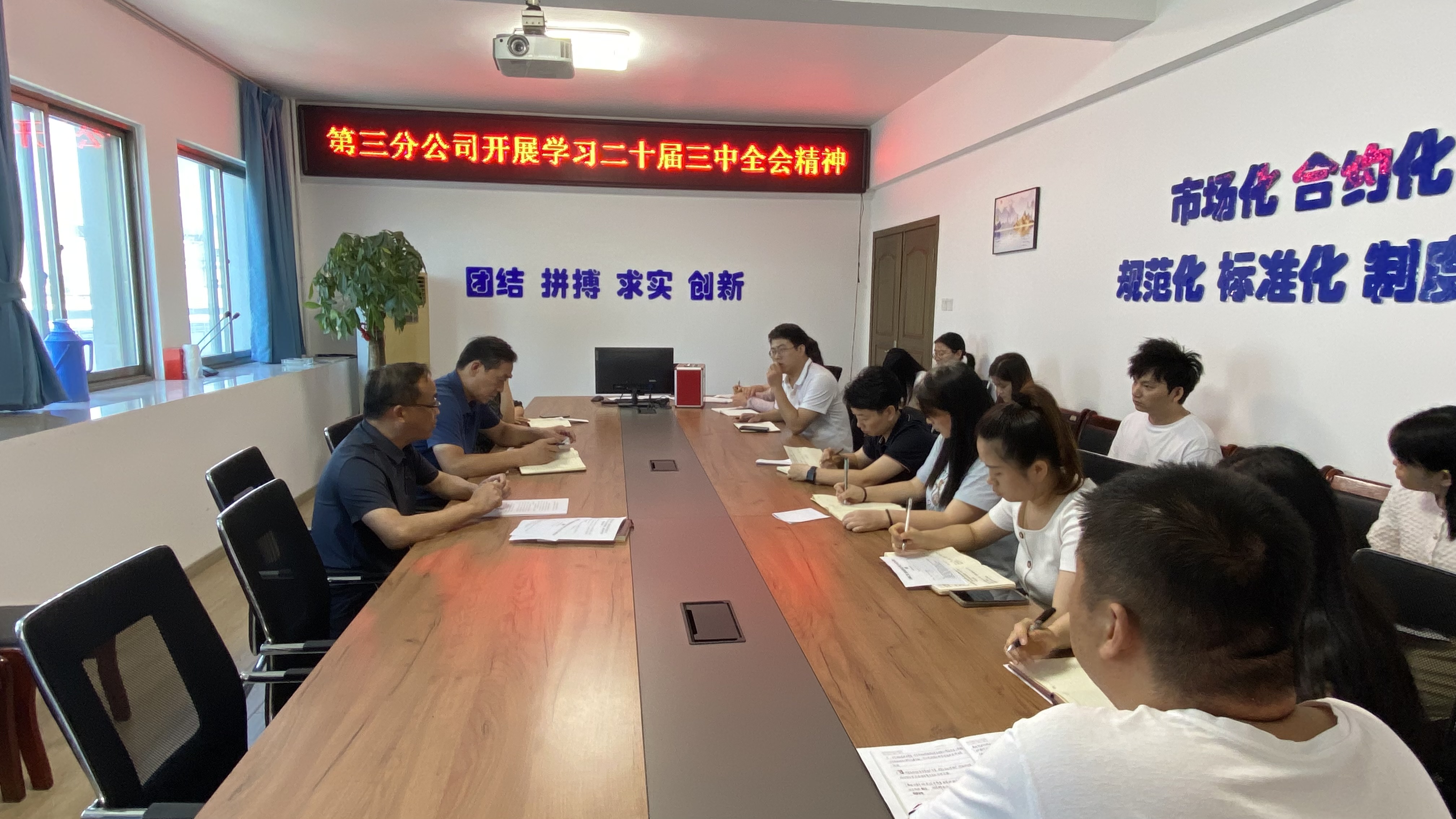 為深入學(xué)習(xí)貫徹黨的二十屆三中全會(huì)精神,引導(dǎo)黨員干部準(zhǔn)確領(lǐng)會(huì)精神實(shí)質(zhì)。近日,第三分公司黨支部組織召開學(xué)習(xí)黨的二十屆三中全會(huì)精神專題會(huì),機(jī)關(guān)全體職工參加學(xué)習(xí)。