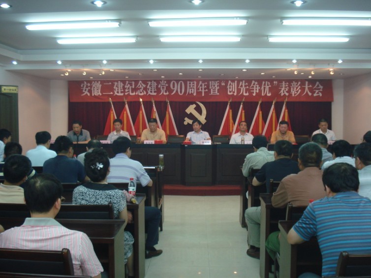 6月29日下午,安徽二建公司隆重召開慶祝建黨90周年暨“創(chuàng)先爭優(yōu)”表彰大會。公司黨委書記朱治淮在會上作重要講話,黨委委員、工會主席李林主持會議,公司黨政領(lǐng)導(dǎo)、機關(guān)全體黨員、各基層黨員代表、受到公司黨委表彰的部分先進集體、先進個人代表共計70余人參加會議。