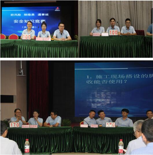 在2019年全國第18個“安全生產(chǎn)月”期間,為更好地促進(jìn)集團(tuán)公司廣大職工深入學(xué)習(xí)掌握行業(yè)安全生產(chǎn)相關(guān)法律法規(guī)及標(biāo)準(zhǔn)規(guī)范,認(rèn)真貫徹落實“安全第一、預(yù)防為主、綜合治理”方針,強(qiáng)化“安全為天 生命至上”理念,6月12日下午,在集團(tuán)公司三樓會議室隆重舉行“防風(fēng)險、除隱患、遏事故”主題安全知識競賽活動,共25支代表隊參賽,公司安全生產(chǎn)總監(jiān)曹建,總經(jīng)理助理、工會副主席蒯家江帶隊參賽。