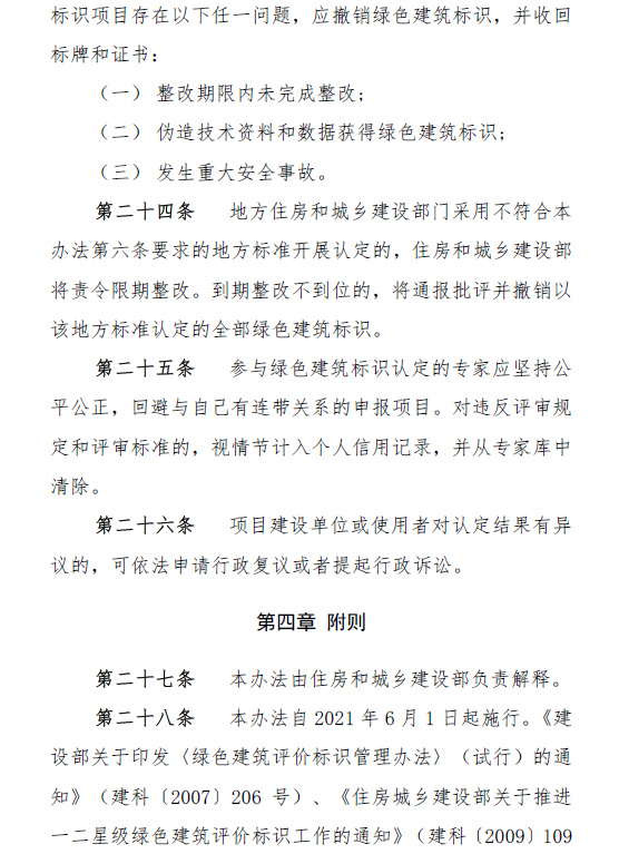 《綠色建筑標(biāo)識(shí)管理辦法》全文如下