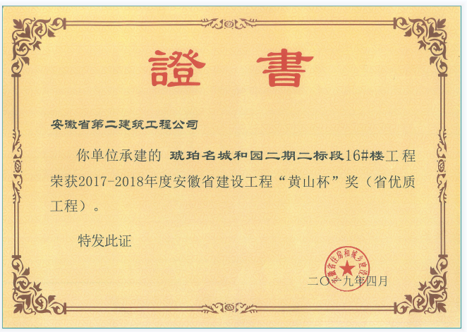 黃山杯(琥珀名城和園二期二標(biāo)段16#樓)