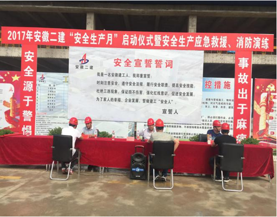 2017年6月8日上午,由安徽二建承建的太和發(fā)藝時(shí)尚文化園公共服務(wù)中心項(xiàng)目開展2017年“安全生產(chǎn)月”啟動(dòng)儀式暨安全生產(chǎn)應(yīng)急救援、消防演練活動(dòng),正式拉開了以“全面落實(shí)企業(yè)安全生產(chǎn)主體責(zé)任”為主題的安全生產(chǎn)月活動(dòng)序幕。公司副總經(jīng)理葉和永,安全管理部、工程管理部、保衛(wèi)部、太和PPP項(xiàng)目負(fù)責(zé)人、班組長、一線作業(yè)施工人員等百余人參加了此次活動(dòng)。
