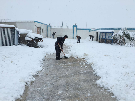 近日,阿爾及利亞康斯坦丁接連下了幾場大雪,雪花翩躚飛舞,康斯坦丁大地一片銀裝素裹。為了防止路面結(jié)冰,方便人員出行,119日早晨,在項目部經(jīng)理章恒旭的帶領(lǐng)下,康斯坦丁6000套項目部全體管理人員頂風冒雪、齊心協(xié)力上路清理項目部院內(nèi)及道路積雪。