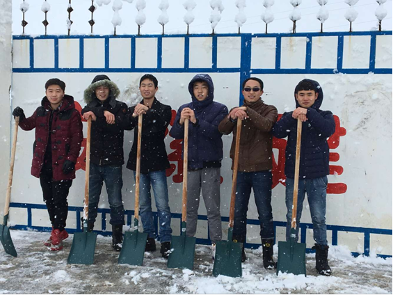 寒風陣陣,雪花飄飄,厚厚的積雪讓人步履艱難,但這并沒有阻擋隊伍的鏟雪進度,每一鍬、每一鏟,都凝結(jié)大家的付出和努力。經(jīng)過奮戰(zhàn),道路,院內(nèi)積雪都被清掃干凈,確保了道路暢通和人員安全,極大的方便了項目全體人員的出行,項目建設(shè)進度得以正常推進。