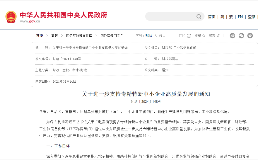 兩部門發(fā)文,支持專精特新中小企業(yè)高質(zhì)量發(fā)展