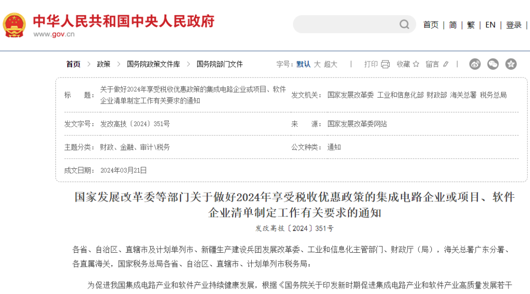 為促進(jìn)我國集成電路產(chǎn)業(yè)和軟件產(chǎn)業(yè)持續(xù)健康發(fā)展,國家發(fā)展改革委、工業(yè)和信息化部等五部門日前印發(fā)《關(guān)于做好2024年享受稅收優(yōu)惠政策的集成電路企業(yè)或項(xiàng)目、軟件企業(yè)清單制定工作有關(guān)要求的通知》(以下稱《通知》),提出2024年享受稅收優(yōu)惠政策的集成電路企業(yè)或項(xiàng)目、軟件企業(yè)清單制定工作,基本延用2023年清單制定程序、享受稅收優(yōu)惠政策的企業(yè)條件和項(xiàng)目標(biāo)準(zhǔn)。