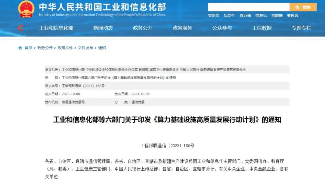 六部門聯(lián)合發(fā)文,加大對(duì)算力重點(diǎn)項(xiàng)目的支持