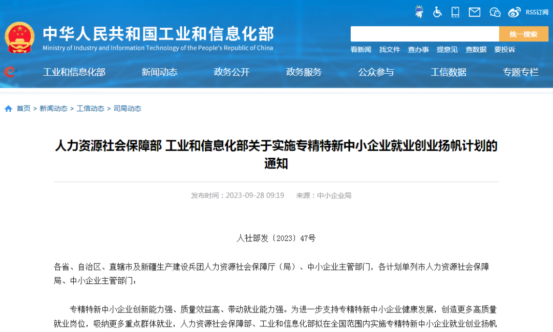 兩部門印發(fā)通知,實(shí)施專精特新中小企業(yè)就業(yè)創(chuàng)業(yè)揚(yáng)帆計(jì)劃