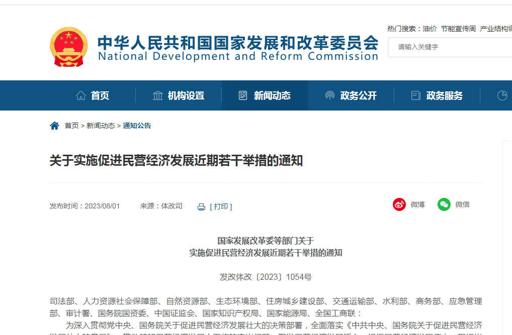 日前,國家發(fā)展改革委網(wǎng)站發(fā)布關(guān)于實(shí)施促進(jìn)民營經(jīng)濟(jì)發(fā)展近期若干舉措的通知。